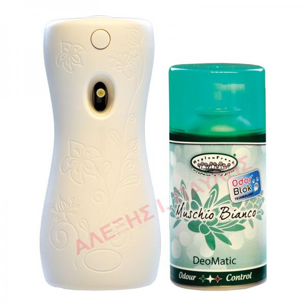 1) Εισαγάγετε το δοχείο στον αυτόματο διαχύτη με το ακροφύσιο ψεκασμού στραμμένο προς τα έξω. Βεβαιωθείτε ότι ο διακόπτης βρίσκεται στη θέση "Off".
