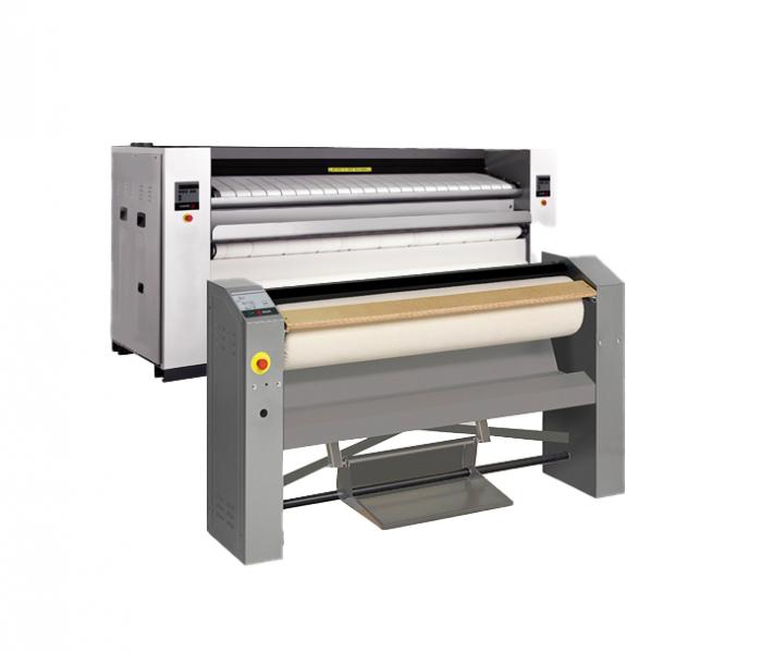 2. Τα μοντέλα θερμαινόμενου κυλίνδρου (ή flatwork ironers). Aυτά είναι μεγαλύτερης παραγωγής και όσα έχουν πάνω από 50 cm διάμετρο μπορούν να στεγνώσουν τον ιματισμό χωρίς να χρειάζεται στεγνωτήριο εφόσον τα πλυντήρια έχουν φυγόκεντρο 450 g (click). Γίνεται μεγάλη οικονομία σε ενέργεια και εργατικά κόστη . Τα χρησιμοποιούν επαγγελματικα / βιομηχανικά πλυντήρια, μεγάλα ξενοδοχεία και όπου υπάρχουν μεγάλες παραγωγές.