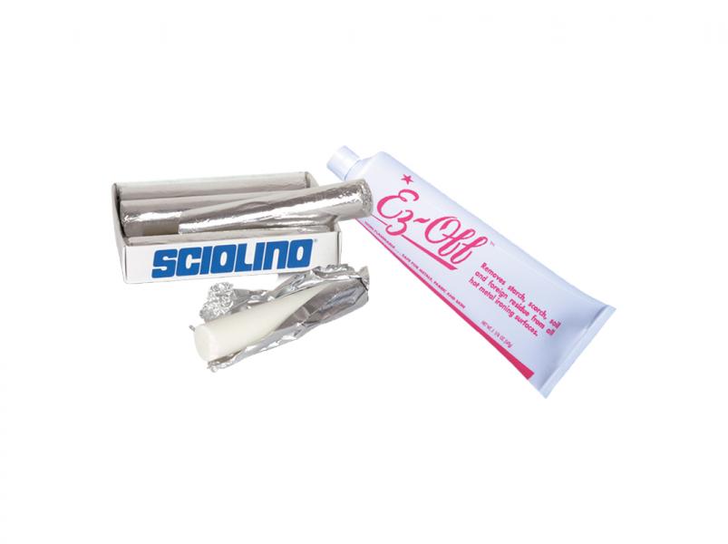 Σε ζεστή πλάκα ατμοσιδήρου περνάμε το κερί (sciolino) ή την κρέμα (Ez-off) και τρίβουμε με ένα βαμβακερό μαλακό πανί.
