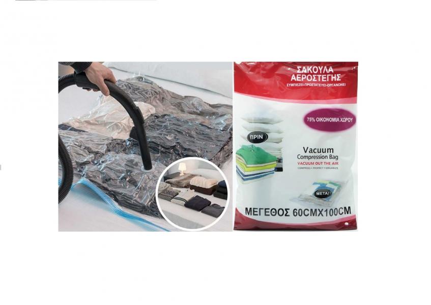 Τοποθετώντας τα ρούχα μέσα στη σακούλα και εφαρμόζοντας το σωλήνα ηλεκτρικής σκούπας στη βαλβίδα βγάζουμε τον αέρα